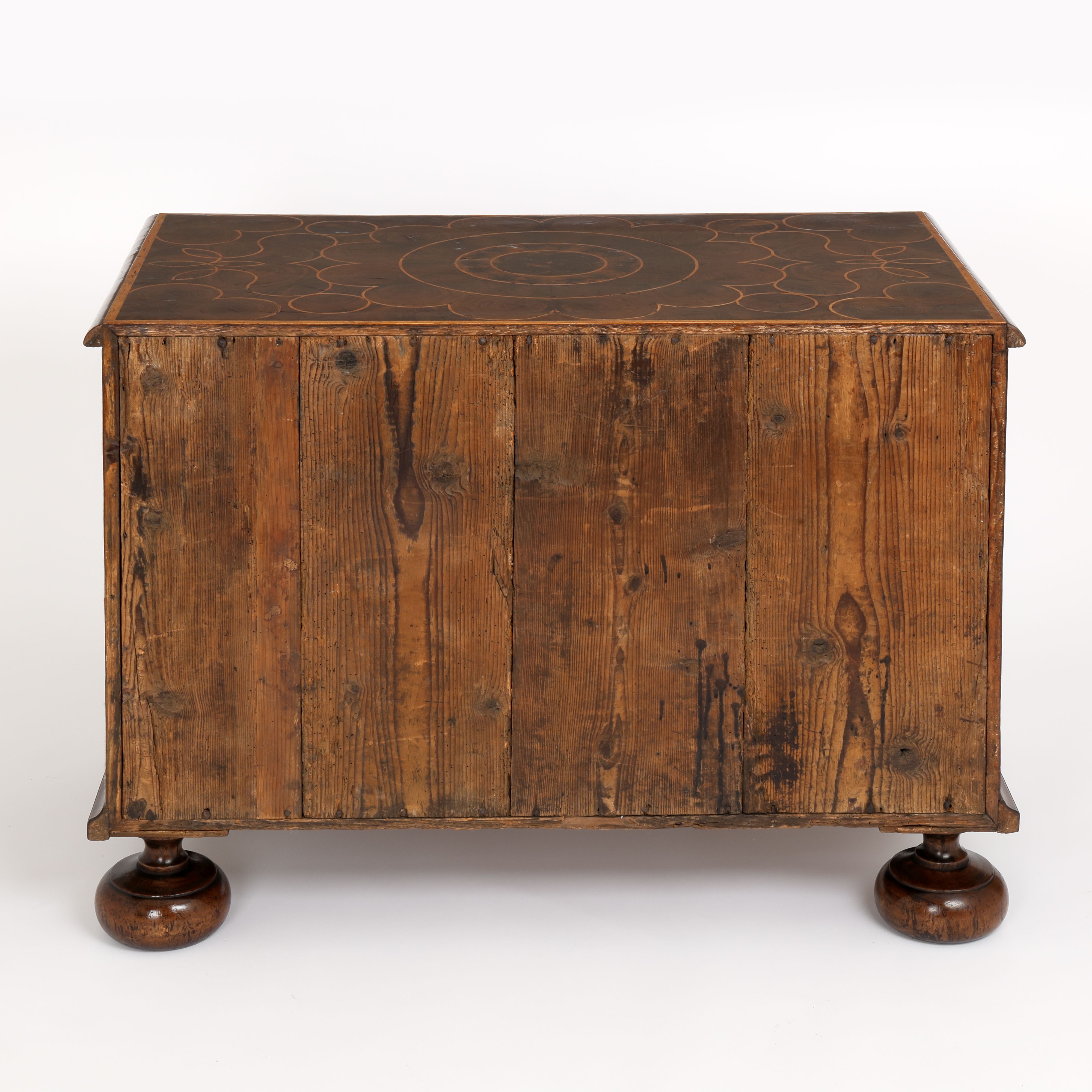 Believed to date from about 1665 to 1675 with plain-box drawer construction without runners and early hand-cut dovetail joints.